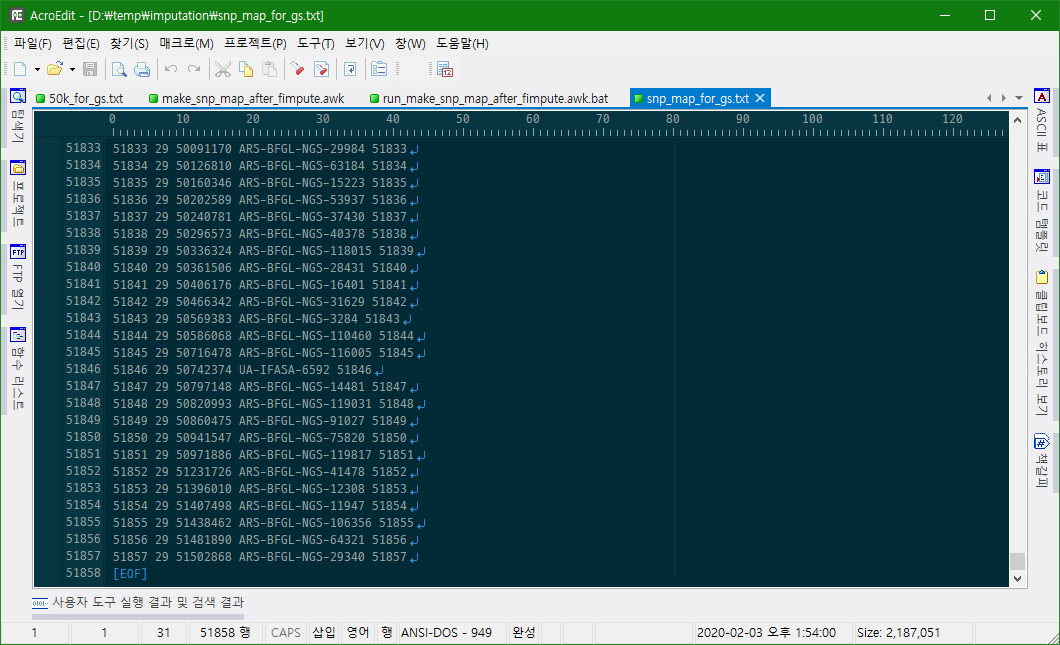 run_make_snp_map_after_fimpute.awk.bat 파일을 만들어 실행을 쉽게 한다.