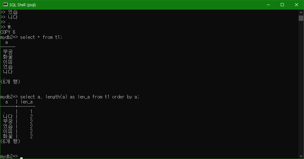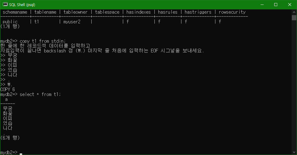 윈도우즈에서 postgresql을 사용하다 보니, pgAdmin과 EMS SQL Manager for PostgreSQL과 같은 그래픽 도구를 사용하므로 psql과 같은 텍스트 기반의 툴을 사용하는데 서툴었다.