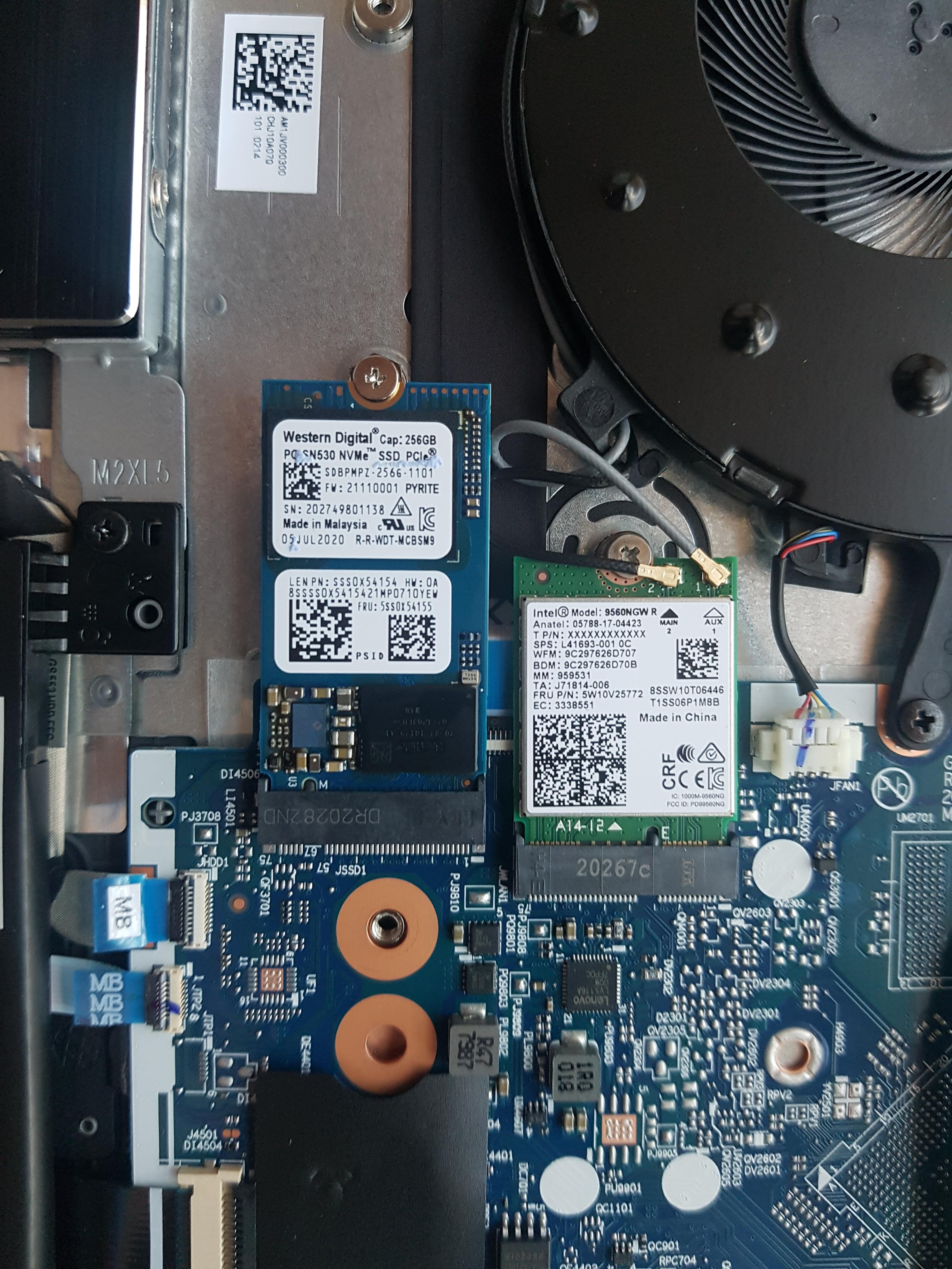 원래 달려 있던 256G NVMe SSD. 웨스턴 디지탈 것인가 보다.