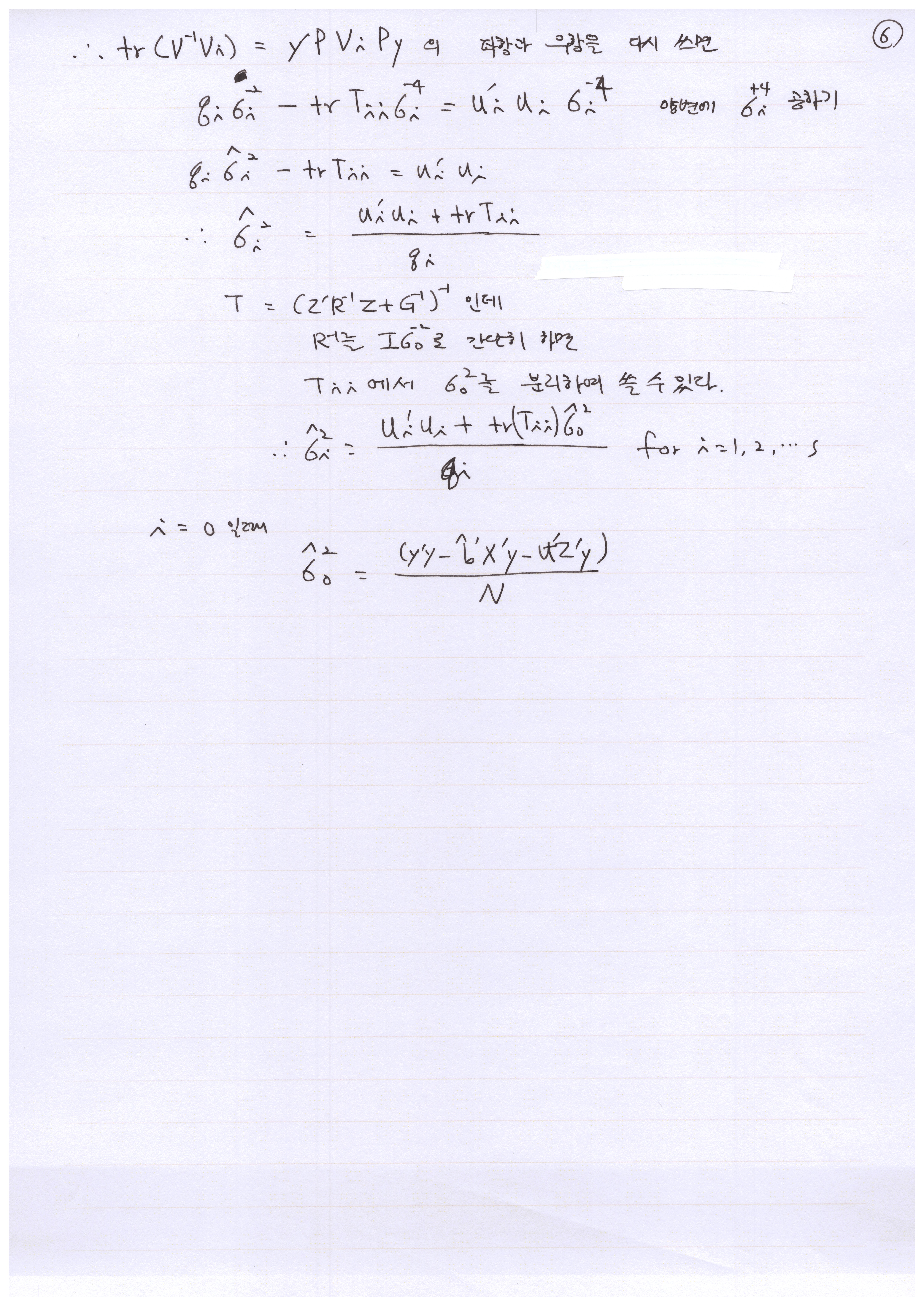 위 least squares equation을 입력하고, 해를 풀고(expectation), 분산 성분을 구해 보자(maximization)